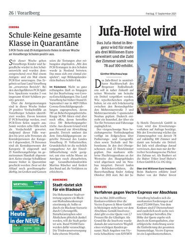 Das Jufa-Hotel in Bregenz wird für mehr als drei Millionen Euro erweitert und die Zahl der Zimmer somit von 78 auf 100 erhöht.