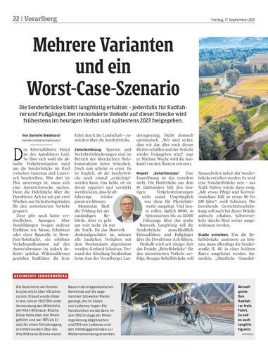 Die Senderbrücke bleibt langfristig erhalten – jedenfalls für Radfahrer und Fußgänger. Der motorisierte Verkehr auf dieser Strecke wird frühestens im heurigen Herbst und spätestens 2023 freigegeben.