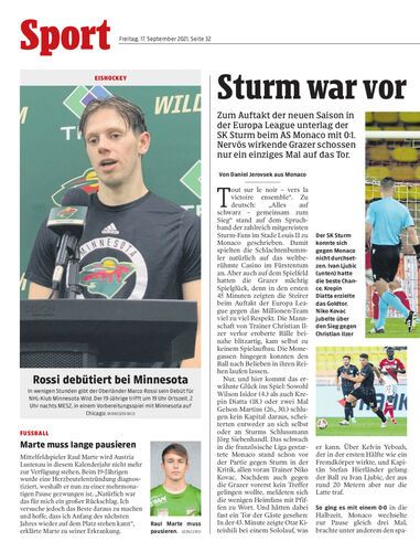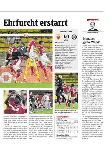Zum Auftakt der neuen Saison in der Europa League unterlag der SK Sturm beim AS Monaco mit 0:1. Nervös wirkende Grazer schossen nur ein einziges Mal auf das Tor.