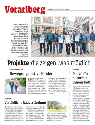 Unter dem Motto „Verkehrswende umsetzen“ stand der diesjährige VCÖ-Mobilitätspreis Vorarlberg. Eine Fachjury wählte unter insgesamt 30 Einreichungen drei besonders vorbildliche Projekte aus. Gestern wurden die Gewinner prämiert.