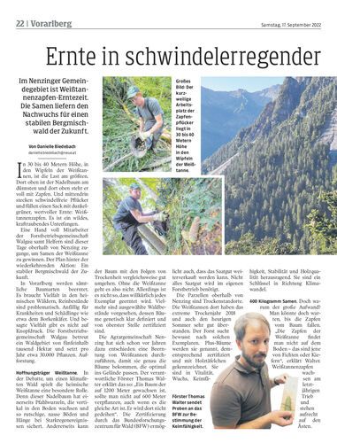 Im Nenzinger Gemeindegebiet ist Weißtannenzapfen-Erntezeit. Die Samen liefern den Nachwuchs für einen stabilen Bergmischwald der Zukunft.