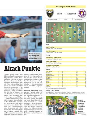 Die inklusive ÖFB-Cup seit sechs Spielen sieglosen Altacher peilen heute gegen die in der Tabelle nur drei Zähler vor ihnen liegenden Klagenfurter einen vollen Erfolg an. Spielbeginn im Schnabelholz ist um 17 Uhr.