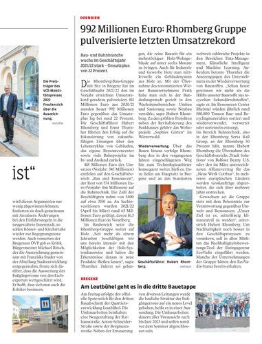 Bau- und Bahnbranche wuchs im Geschäftsjahr 2021/22 stark – Umsatzplus von 22 Prozent.