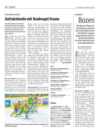 Der EHC Lustenau hat heute Abend (19.30 Uhr) die Falken aus Fassa zu Gast. Für den EC Bregenzerwald startet die Meisterschaft bei den Kitzbüheler Adlern.
