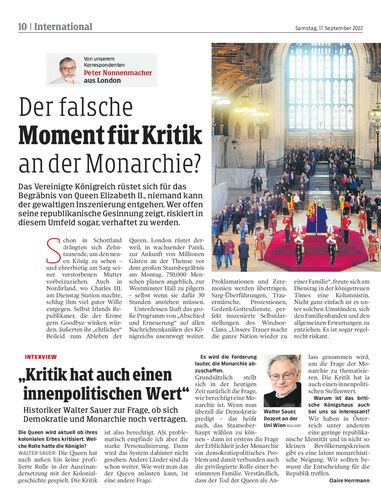 Historiker Walter Sauer zur Frage, ob sich Demokratie und Monarchie noch vertragen.