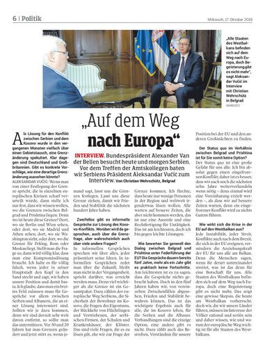 Bundespräsident Alexander Van der Bellen besucht heute und morgen Serbien. Vor dem Treffen der Amtskollegen baten wir Serbiens Präsident Aleksandar Vučić zum Interview. Von Christian Wehrschütz, Belgrad