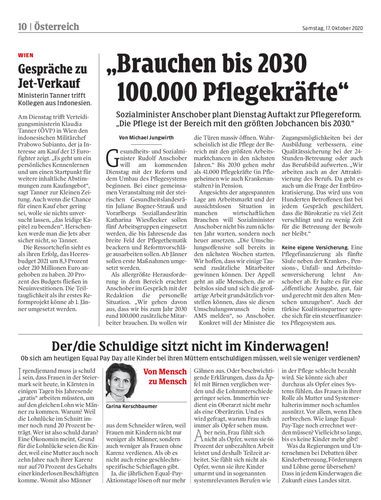 Sozialminister Anschober plant Dienstag Auftakt zur Pflegereform. „Die Pflege ist der Bereich mit den größten Jobchancen bis 2030.“