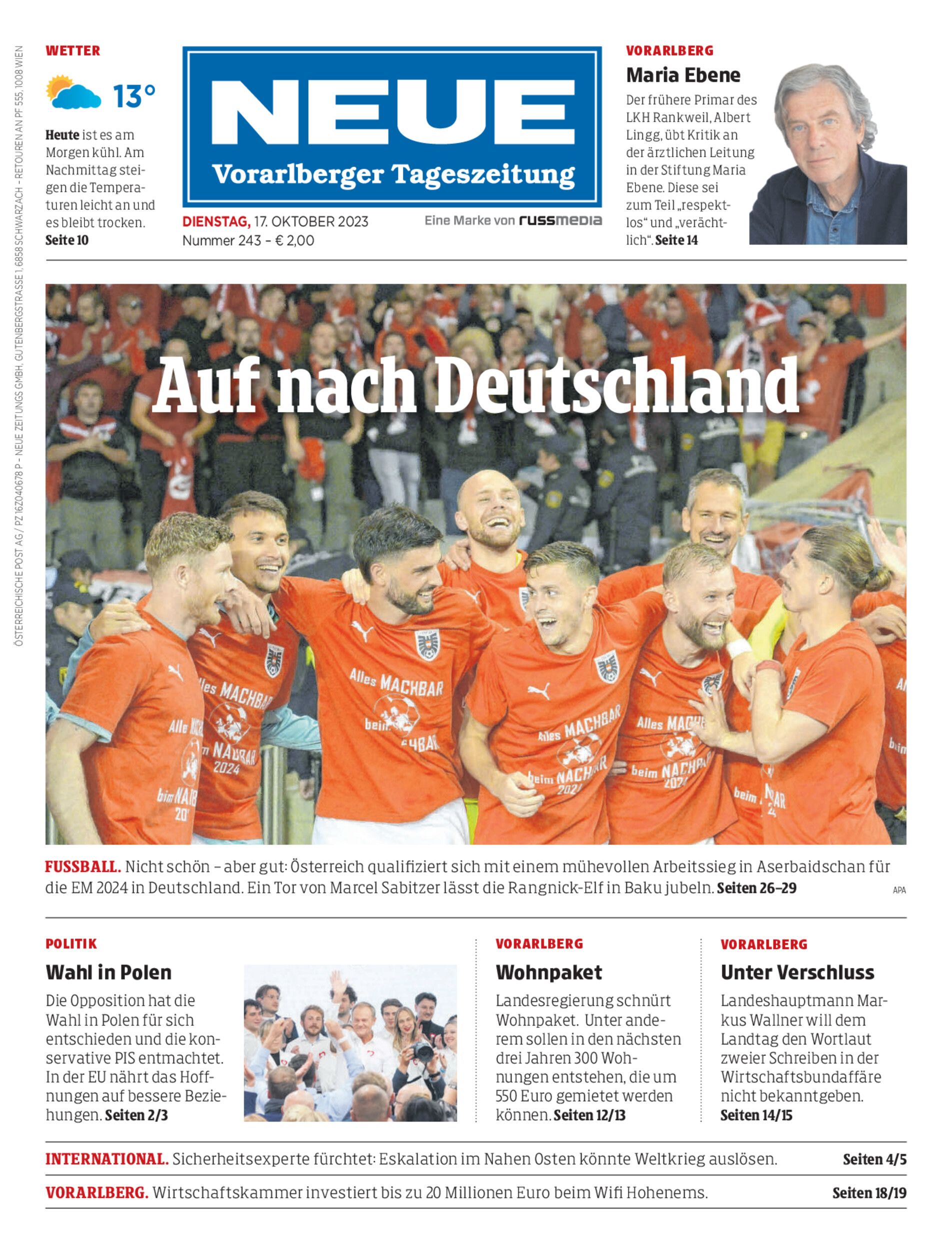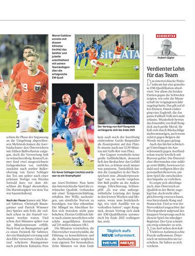 Ralf Rangnicks Elf gewann in Aserbaidschan durch ein Sabitzer-Elfertor 1:0 und ist fix für die EM-Endrunde in Deutschland qualifiziert.