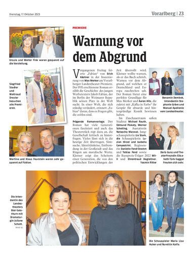Seit Freitag ist Erich Kästners Gesellschaftssatire „Fabian“ in der Inszenierung von Max Merker in Bregenz zu sehen.