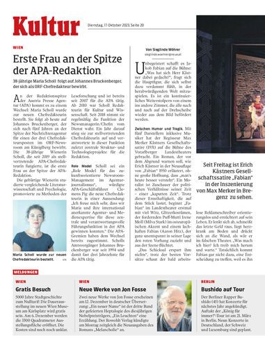 38-jährige Maria Scholl folgt auf Johannes Bruckenberger, der sich als ORF-Chefredakteur bewirbt.