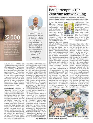 „Wiederbelebung der Altstadt Hohenems“ von Zentralvereinigung der Architekt:innen Österreichs ausgezeichnet.