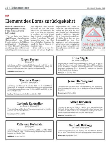Ein in die USA verbrachter Steinkopf der Fassade des Kölner Doms kam unverhofft zurück.
