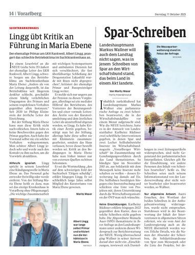 Der ehemalige Primar am LKH Rankweil, Albert Lingg, prangert das schlechte Betriebsklima im Suchtkrankenhaus an.