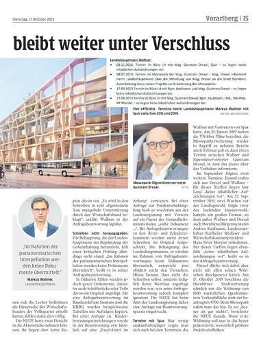 Landeshauptmann Markus Wallner will auch dem Landtag nicht sagen, was in jenem Schreiben von Spar an den Wirtschaftsbund stand, das beim Land in einem Akt landete.
