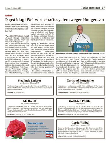 Papst klagt Weltwirtschaftssystem wegen Hungers an