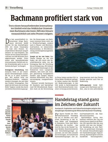 Trotz einem herausfordernden internationalen Umfeld wird das Feldkircher Unternehmen Bachmann electronic 2025 den Umsatz voraussichtlich um zehn Prozent steigern.