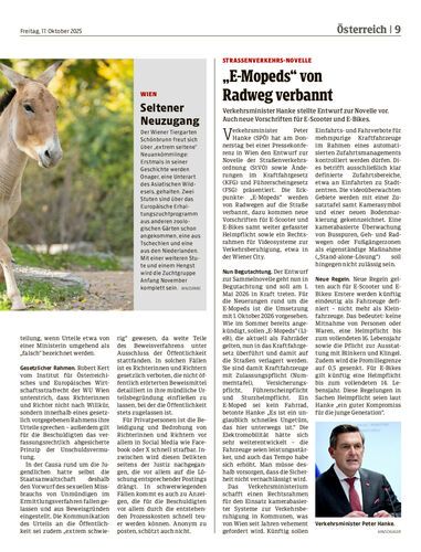 Verkehrsminister Hanke stellte Entwurf zur Novelle vor. Auch neue Vorschriften für E-Scooter und E-Bikes.