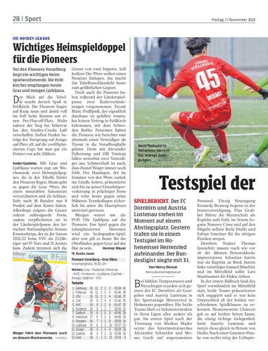 Spielbericht. Der FC Dornbirn und Austria Lustenau stehen im Moment auf einem Abstiegsplatz. Gestern trafen sie in einem Testspiel im Hohenemser Herrenried aufeinander. Der Bundesligist siegte mit 3:1.