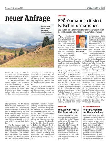 Laut Martin Fitz (FPÖ) verunsicherten Behauptungen durch die S 18-Gegner die Stimmbürger vor der Volksbefragung.