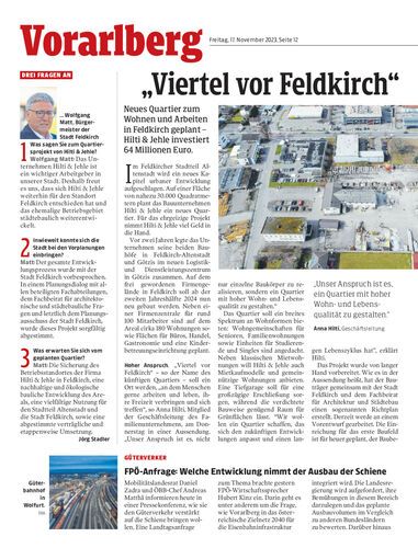 Neues Quartier zum Wohnen und Arbeiten in Feldkirch geplant – Hilti & Jehle investiert 64 Millionen Euro.