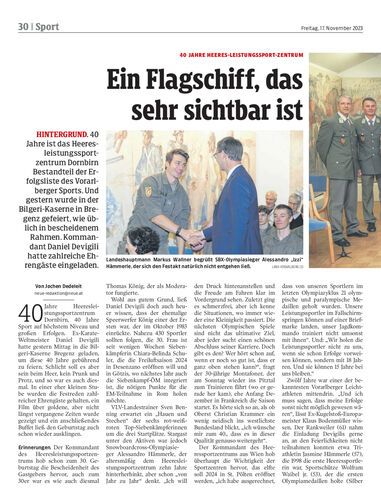 Hintergrund. 40 Jahre ist das Heeresleistungssportzentrum Dornbirn Bestandteil der Erfolgsliste des Vorarl-berger Sports. Und gestern wurde in der Bilgeri-Kaserne in Bregenz gefeiert, wie üblich in bescheidenem Rahmen. Kommandant Daniel Devigili hatte zahlreiche Ehrengäste eingeladen.