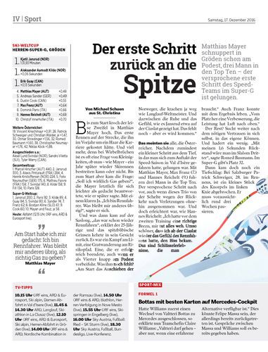 Matthias Mayer schnuppert in Gröden schon am Podest, drei Mann in den Top Ten – der versprochene erste Schritt des Speed-Teams im Super-G ist gelungen.