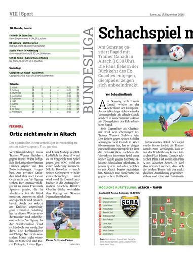 Am Sonntag gastiert Rapid mit Trainer Canadi in Altach (16.30 Uhr). Die Fans fiebern der Rückkehr des Ex-Coaches entgegen, die Spieler zeigen sich unbeeindruckt.