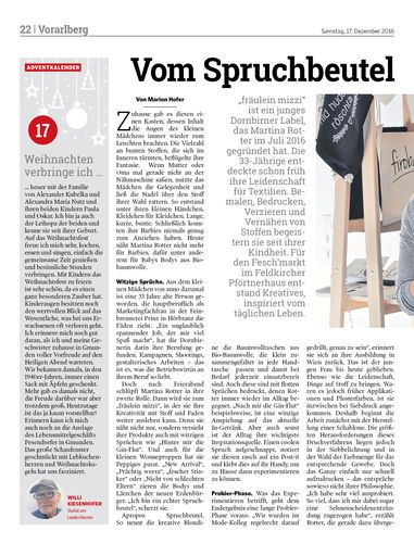 „fräulein mizzi“ ist ein junges Dornbirner Label, das Martina Rotter im Juli 2016 gegründet hat. Die 33-Jährige entdeckte schon früh ihre Leidenschaft für Textilien. Bemalen, Bedrucken, Verzieren und Vernähen von Stoffen begeistern sie seit ihrer Kindheit. Für den Fesch’markt im Feldkircher Pförtnerhaus entstand Kreatives, inspiriert vom täglichen Leben.