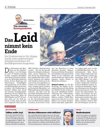 Die Evakuierung in Ost-Aleppo wurde unter gegenseitigen Schuldzuweisungen der Konfliktparteien ausgesetzt.