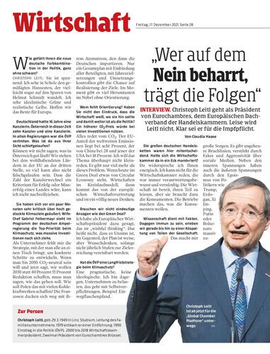 Christoph Leitl geht als Präsident von Eurochambres, dem Europäischen Dachverband der Handelskammern. Leise wird Leitl nicht. Klar sei er für die Impfpflicht. Von Claudia Haase