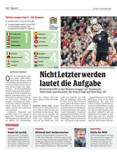 Österreich trifft in der Nations League auf Frankreich, Dänemark und Kroatien. Der Fokus liegt auf dem Play-off.