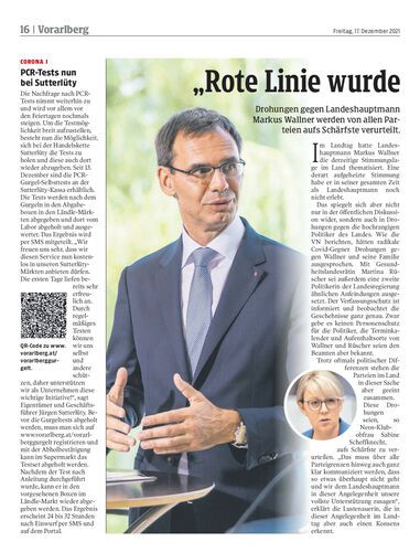 Drohungen gegen Landeshauptmann Markus Wallner werden von allen Parteien aufs Schärfste verurteilt.