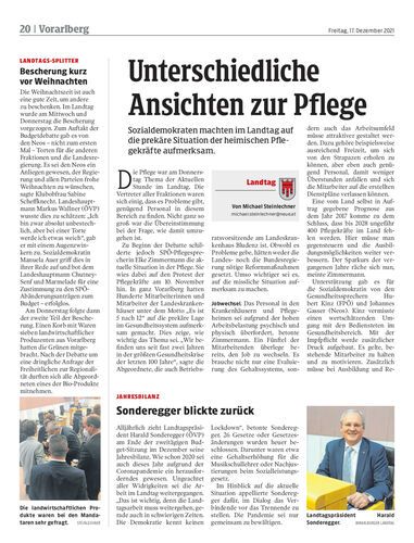 Sozialdemokraten machten im Landtag auf die prekäre Situation der heimischen Pflegekräfte aufmerksam.