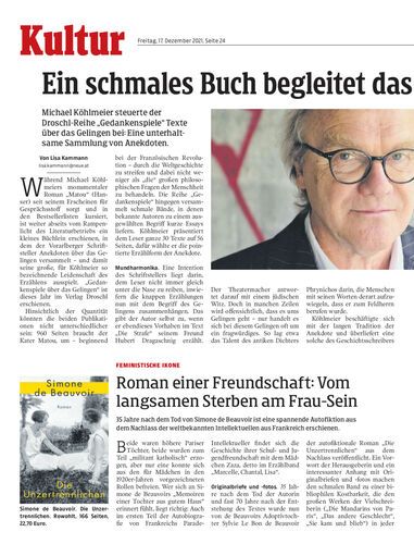 Michael Köhlmeier steuerte der Droschl-Reihe „Gedankenspiele“ Texte über das Gelingen bei: Eine unterhaltsame Sammlung von Anekdoten.