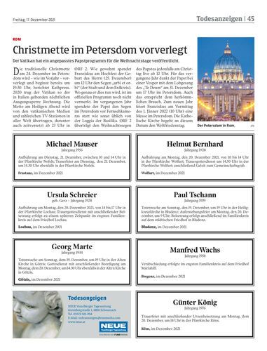 Der Vatikan hat ein angepasstes Papstprogramm für die Weihnachtstage veröffentlicht.