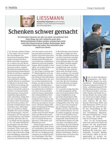 Im Schenken träumen wir alle von einer versunkenen Zeit. Viele Dinge, die sich vielleicht unter dem Weihnachtsbaum finden werden, entsprechen nicht mehr dem Stand unserer fluiden Technologie. Wohl erleichtert diese das Leben. Das Schenken aber macht sie schwer.