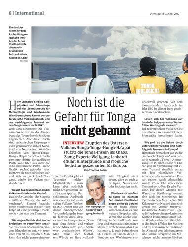 Eruption des Untersee-Vulkans Hunga-Tonga-Hunga-Ha’apai stürzte die Tonga-Inseln ins Chaos. Zamg-Experte Wolfgang Lenhardt erklärt Hintergründe und mögliche Bedrohungsszenarien für Europa. Von Thomas Golser