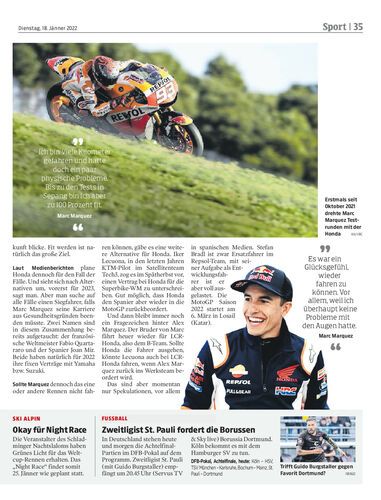 Der achtfache Motorrad-Weltmeister sah alles doppelt (Diplopie). Am Wochenende drehte der Spanier erste Rennrunden in Portugal.