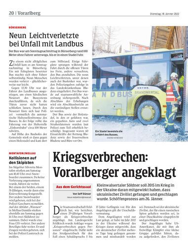 Kleinwalsertaler Söldner soll 2015 im Krieg in der Ukraine daran mitgewirkt haben, dass ukrainischer Zivilist gefangen und geschlagen wurde. Schöffenprozess am 26. Jänner.