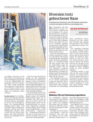 Einstellung des Verfahrens, wenn 140 Stunden Gratisarbeit verrichtet und Opfer mit 500 Euro entschädigt wird.