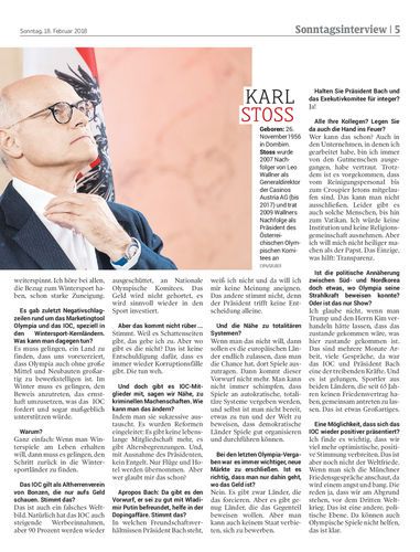 Interview. Österreichs IOC-Mitglied Karl Stoss über die Spiele in Korea, die Schattenseiten des IOC und den Kampf, Winterspiele am Leben zu halten. Das geht nur mit Austragungsorten in Europa. Von Michael Schuen aus Pyeongchang
