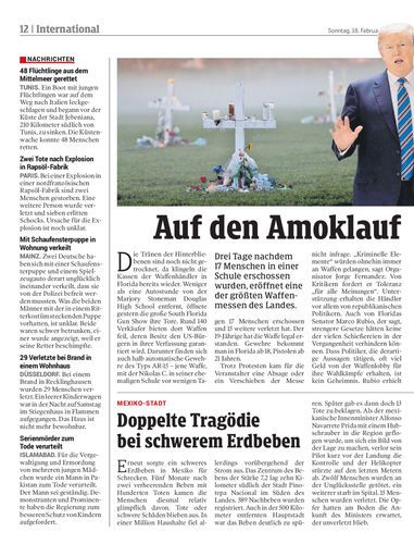 Erneut sorgte ein schweres Erdbeben in Mexiko für Schrecken. Fünf Monate nach zwei verheerenden Beben mit Hunderten Toten kamen die Menschen diesmal relativ glimpflich davon. Tote oder schwere Schäden blieben aus. In einer Million Haushalte fiel allerdings vorübergehend der Strom aus. Das Zentrum des Bebens der Stärke 7,2 lag zehn Kilometer südlich der Stadt Pinotepa Nacional im Süden des Landes. Zudem wurden 389 Nachbeben registriert. Auch in der 500 Kilometer entfernten Hauptstadt war das Beben deutlich zu spüren. Später gab es dann doch 13 Tote zu beklagen. Als der mexikanische Innenminister Alfonso Navarrete Prida mit einem Hubschrauber in die Region geflogen wurde, um sich ein Bild von der Lage zu machen, verlor sein Pilot kurz vor der Landung die Kontrolle und der Helikopter stürzte auf den letzten Metern ab. Zwölf Menschen wurden an der Unglücksstelle getötet, ein weiterer starb im Spital. 15 Menschen wurden verletzt. Die Opfer warteten am Boden auf die Ankunft des Ministers, der unverletzt blieb.