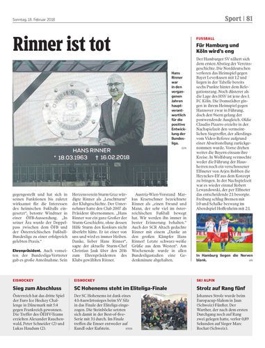 Österreichs Fußball trauert um Hans Rinner. Der Präsident der Bundesliga erlag am Freitag im Alter von 54 Jahren einer Krebserkrankung.