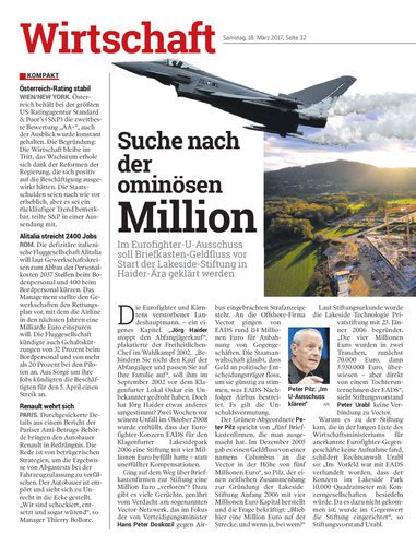 Im Eurofighter-U-Ausschuss soll Briefkasten-Geldfluss vor Start der Lakeside-Stiftung in Haider-Ära geklärt werden.