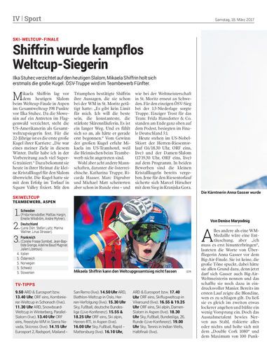 Ilka Stuhec verzichtet auf den heutigen Slalom, Mikaela Shiffrin holt sich erstmals die große Kugel. ÖSV-Truppe wird im Teambewerb Fünfter.