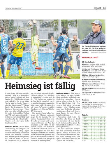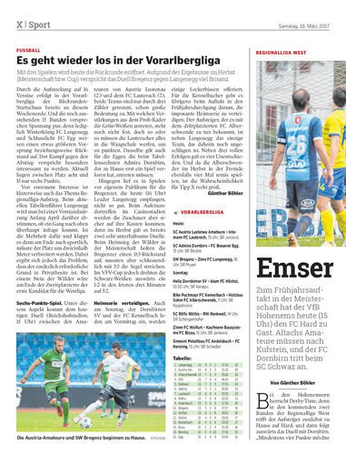 Mit drei Spielen wird heute die Rückrunde eröffnet. Aufgrund der Ergebnisse im Herbst (Meisterschaft bzw. Cup) verspricht das Duell Bregenz gegen Langenegg viel Brisanz.