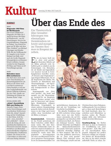 Ein Theaterstück über Gewalterfahrungen von ehemaligen Heimkindern ist heute und morgen im Theater Kosmos in Bregenz zu sehen.