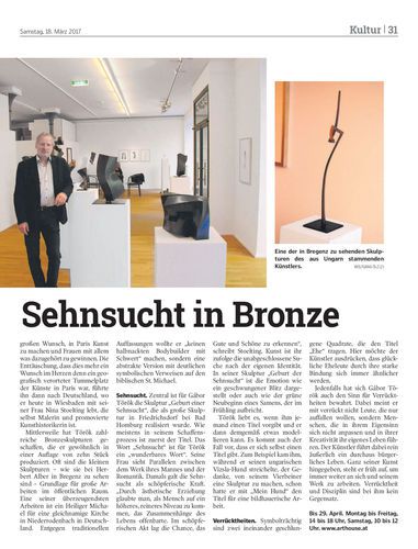 Bronzearbeiten von eigener Dynamik und Eleganz des aus Ungarn stammenden Bildhauers Gábor Török laden ein, die Galerie Arthouse in Bregenz zu besuchen.