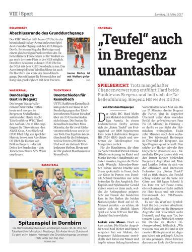 Spielbericht. Trotz mangelhafter Chancenverwertung entführt Hard beide Punkte aus Bregenz und holt sich die Tabellenführung. Bregenz HB weiter Dritter.