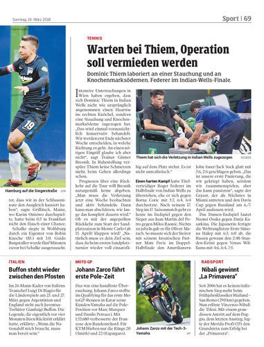 Dominic Thiem laboriert an einer Stauchung und an Knochenmarksödemen. Federer im Indian-Wells-Finale.